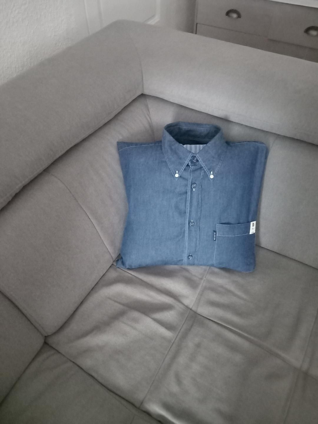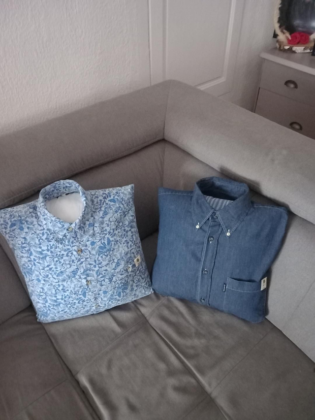 Coussin réalisé dans une chemise en jeans .ref c 003