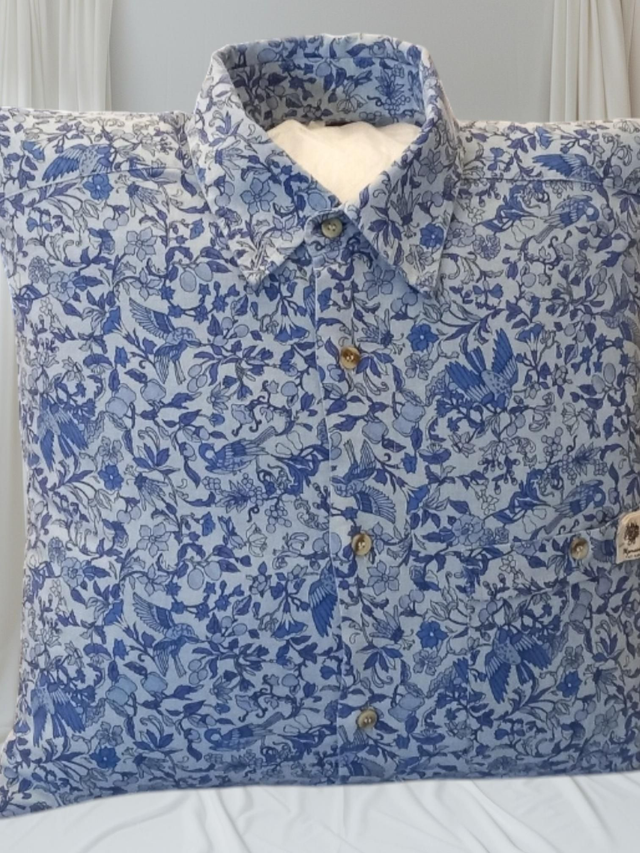 Coussin réalisé dans une chemise avec ses jolis motifs ... ref c 002